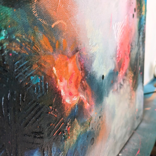 Merging the vibrant energy of spray paint, the bold strokes of acrylics, and the delicate caress of soft pastels, every piece encapsulates a distinctive fusion of boldness and softness, vibrancy and sweetness.