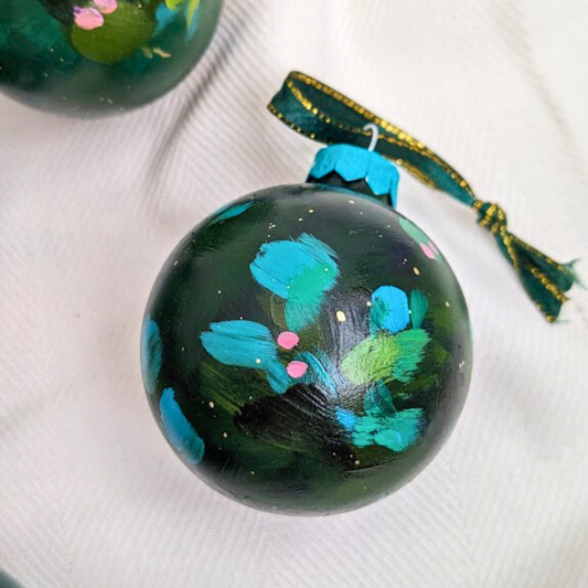 "Glistening Frost on Evergreen" Hand-Painted Glass Ornament, Limited edition