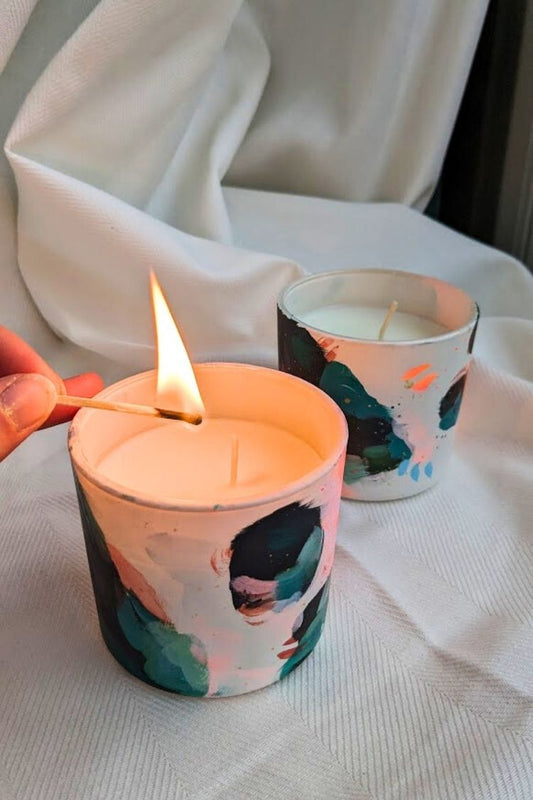 "Frosty Cotton Candy" Hand-painted Scented candles - set of two candles