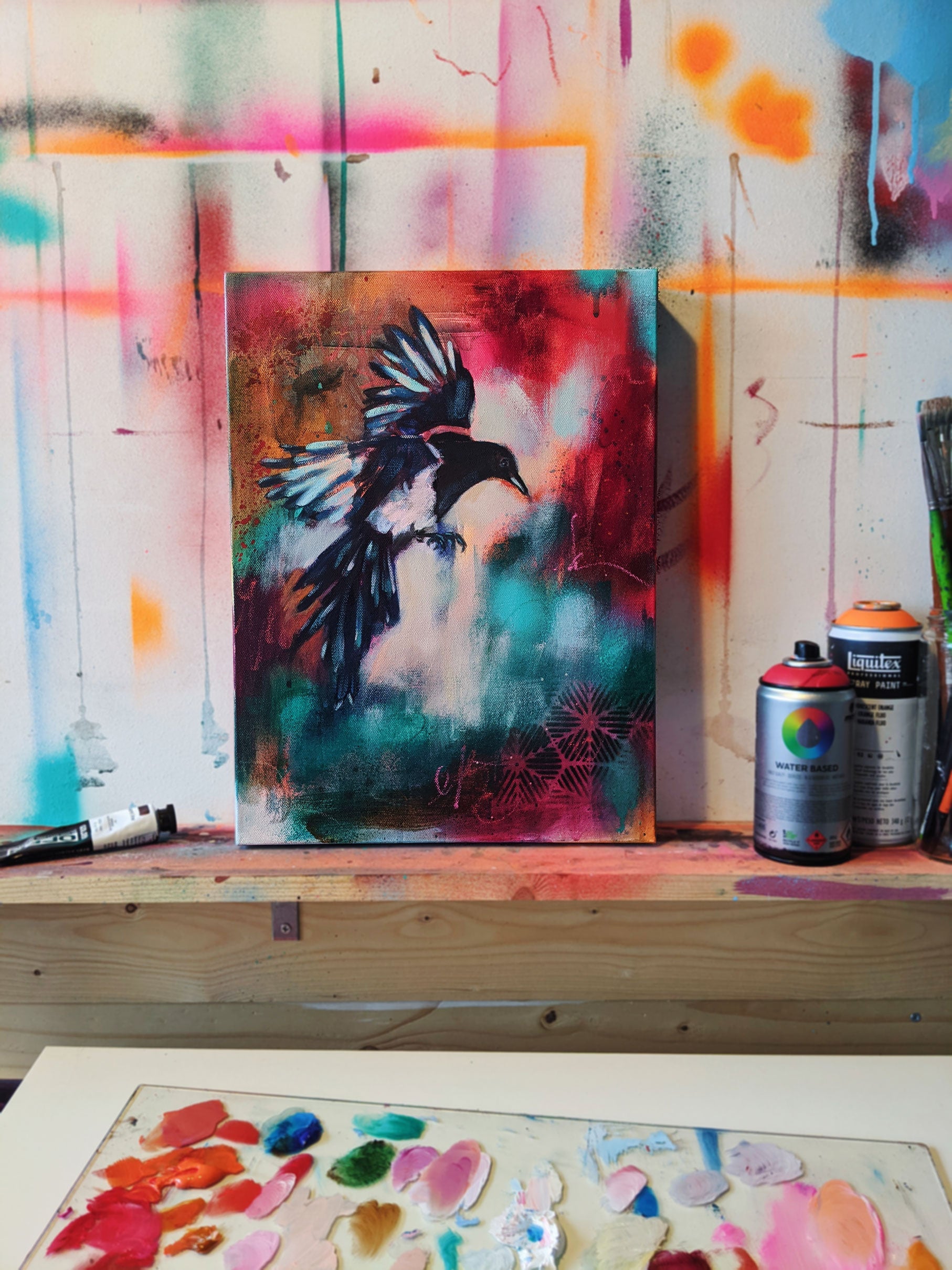Details: 30x40 cm Original oil and mixed media painting on gallery wrapped canvas.