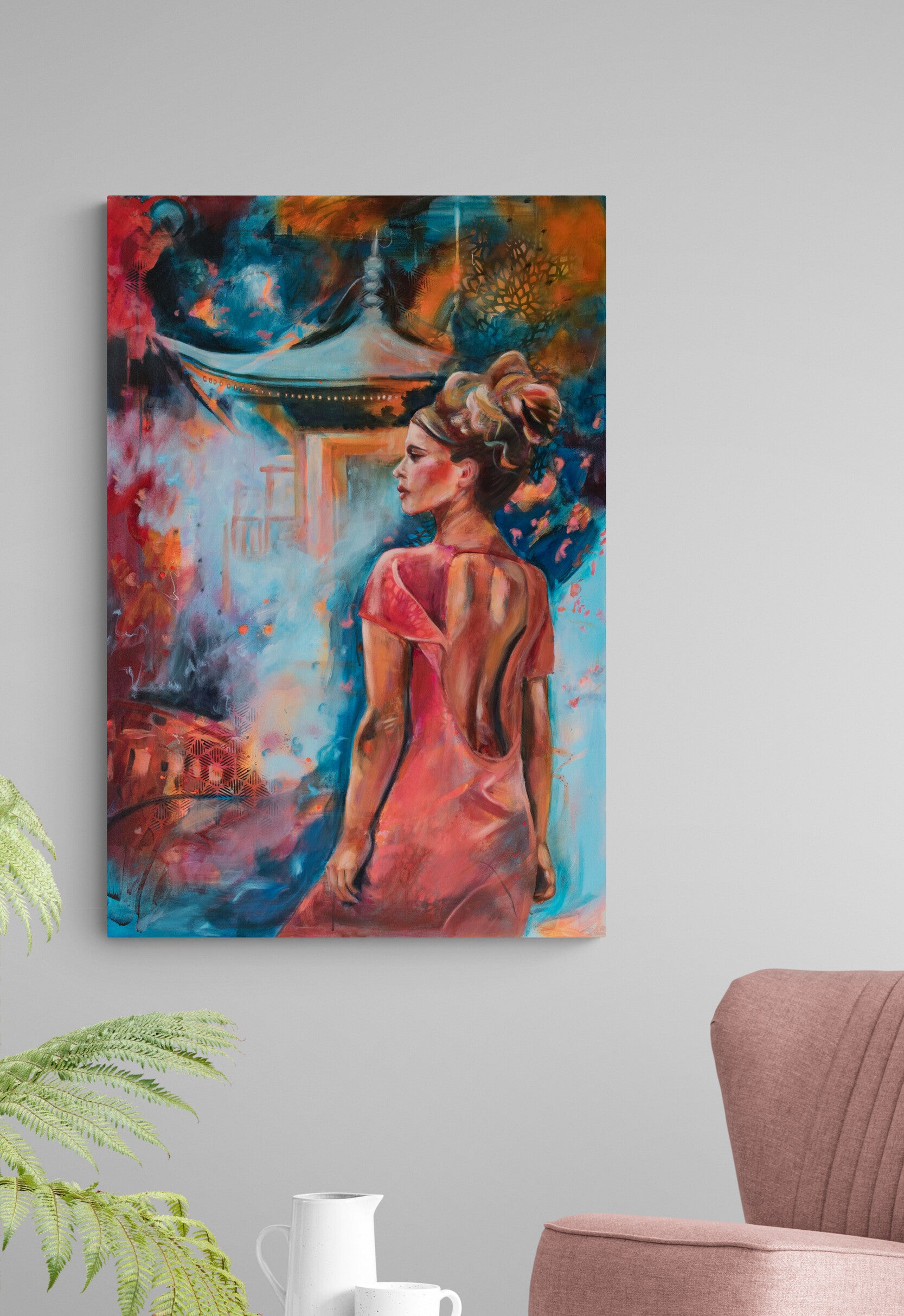 Details: 80x120 cm Original oil and mixed media painting on gallery wrapped canvas.