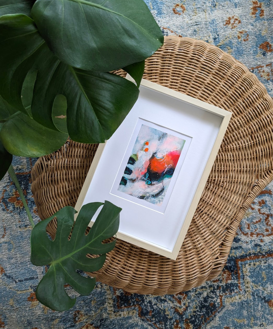 This piece embodies a spirit of playfulness and discovery, rooted in the moment of intuitive creation. Merging the vibrant energy of spray paint, the bold strokes of acrylics, and the delicate caress of soft pastels, every piece encapsulates a distinctive fusion of boldness and softness, vibrancy and sweetness.